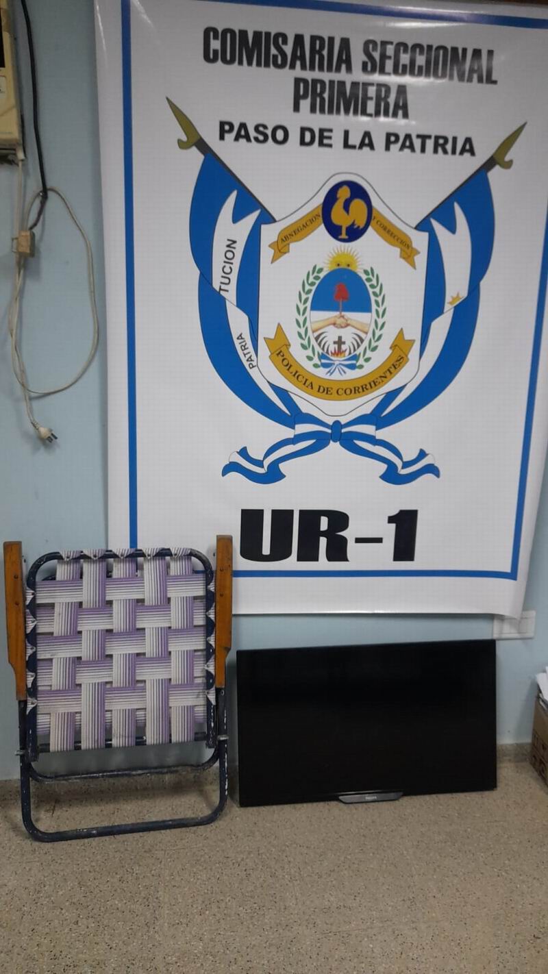 Una vez en el lugar, los uniformados encontraron y secuestraron una silleta. Asimismo, en sintonía con la misma línea investigativa, en un descampado lindante con el domicilio, hallaron y recuperaron un televisor Smart, de 32 pulgadas, el cual también ya presentaba una denuncia que fue robado.