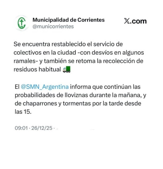 A pesar de la normalización parcial de los servicios en la capital, el Servicio Meteorológico Nacional advierte de chaparrones para esta tarde y emitió una alerta amarilla para la jornada de mañana. Se esperan ráfagas de hasta 70 km/h y abundante caída de agua en cortos periodos.