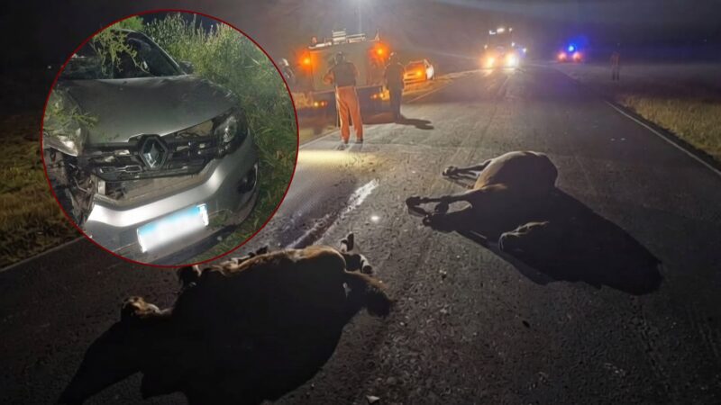 El siniestro ocurrió en un tramo de la ruta donde la presencia de animales sueltos representa un riesgo para quienes circulan durante la noche y la madrugada. Las actuaciones correspondientes quedaron a cargo de las autoridades competentes.
