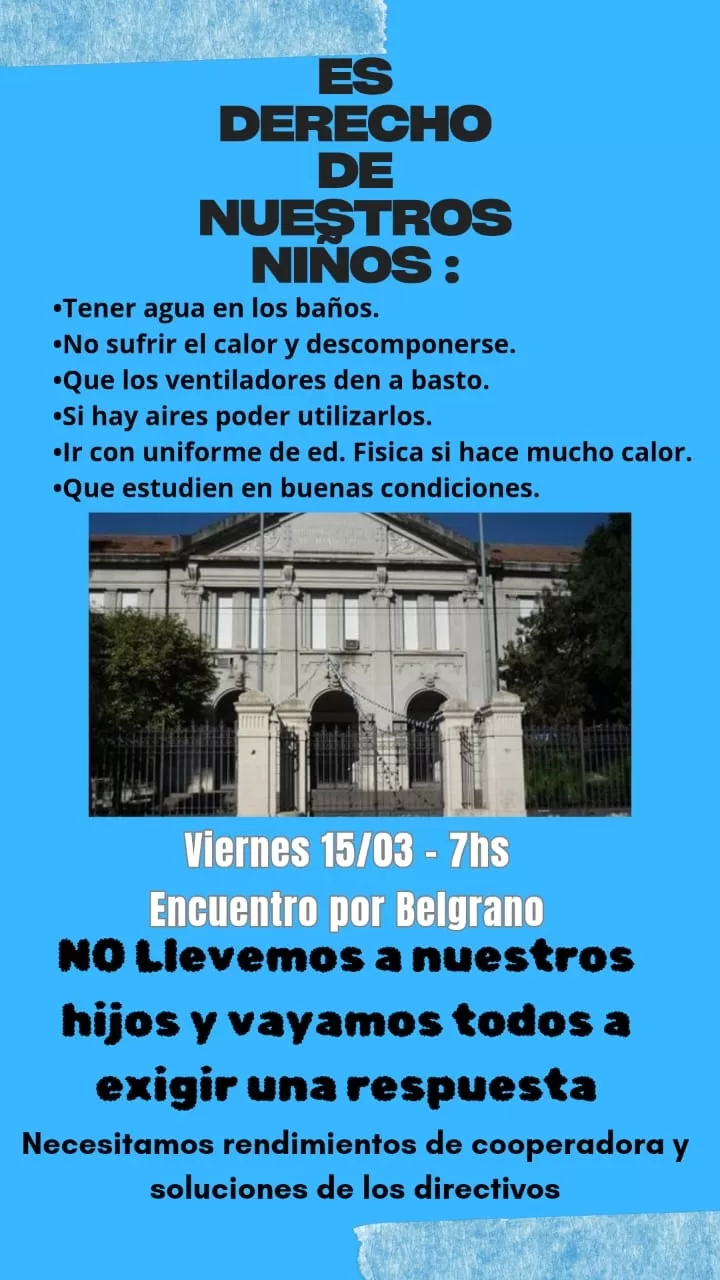 Las altas temperaturas serían el motivador de este reclamo, ya que piden «no sufrir el calor y descomponerse» y que «estudien en buenas condiciones».