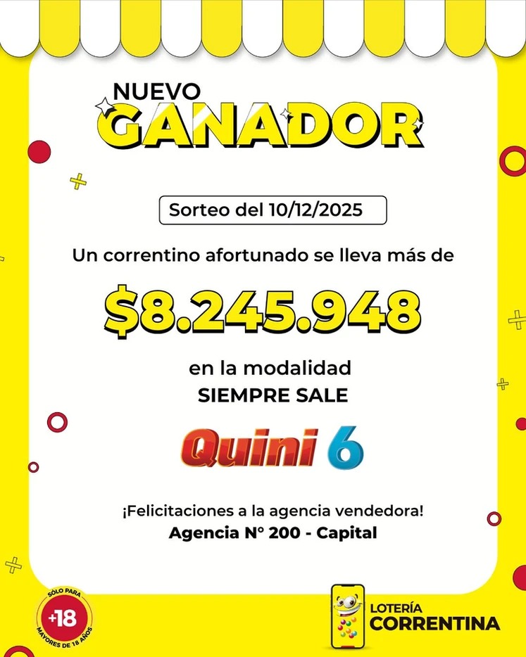 Con estos premios, ya son seis los ganadores del Quini 6 en la provincia durante la última semana, reafirmando la fuerte presencia del juego oficial en todo el territorio correntino.
