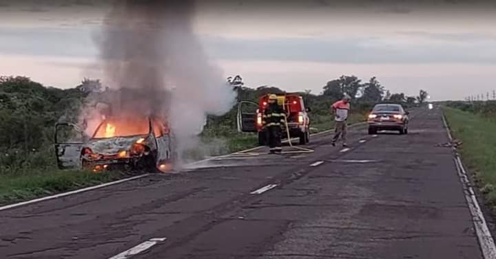 Todo ocurrió ayer, cerca de las 6, sobre el kilómetro 662 de la ruta, en inmediaciones al acceso de Pueblo Libertador. El personal de Bomberos Voluntarios recibió un llamado que los alertaba de la presencia de un automóvil prendido fuego en el lugar.