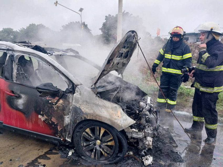 Un vehículo se incendió, en el cruce de las rutas Nacional 12 y Provincial 43, en inmediaciones del aeropuerto Piragine Niveyro de la ciudad de Corrientes, en la jornada de este sábado 6.