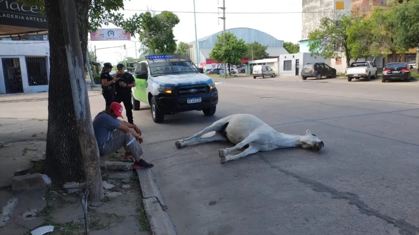 Un caballo convulsionó en plena vía pública y falleció en el cruce de la avenida El Maestro y calle Formosa, cuando era llevado por su propietaria a la Facultad de Veterinaria para ser atendido.