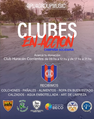 Las donaciones pueden acercarse al Club Huracán, en los horarios de 9 a 12 y de 17 a 21. La iniciativa es llevada adelante con otros clubes deportivos, por lo que llevaba el nombre de «Clubes en Acción».