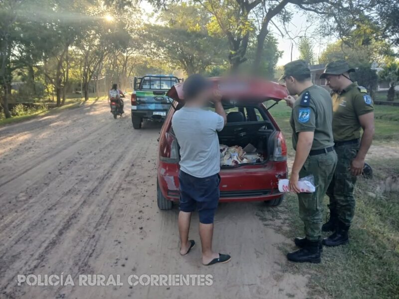 El operativo se inició cerca de las 17:30, cuando una comisión policial que recorría la Ruta Provincial N° 3 observó a un hombre cargando productos cárnicos en la parte trasera de un Fiat rojo.