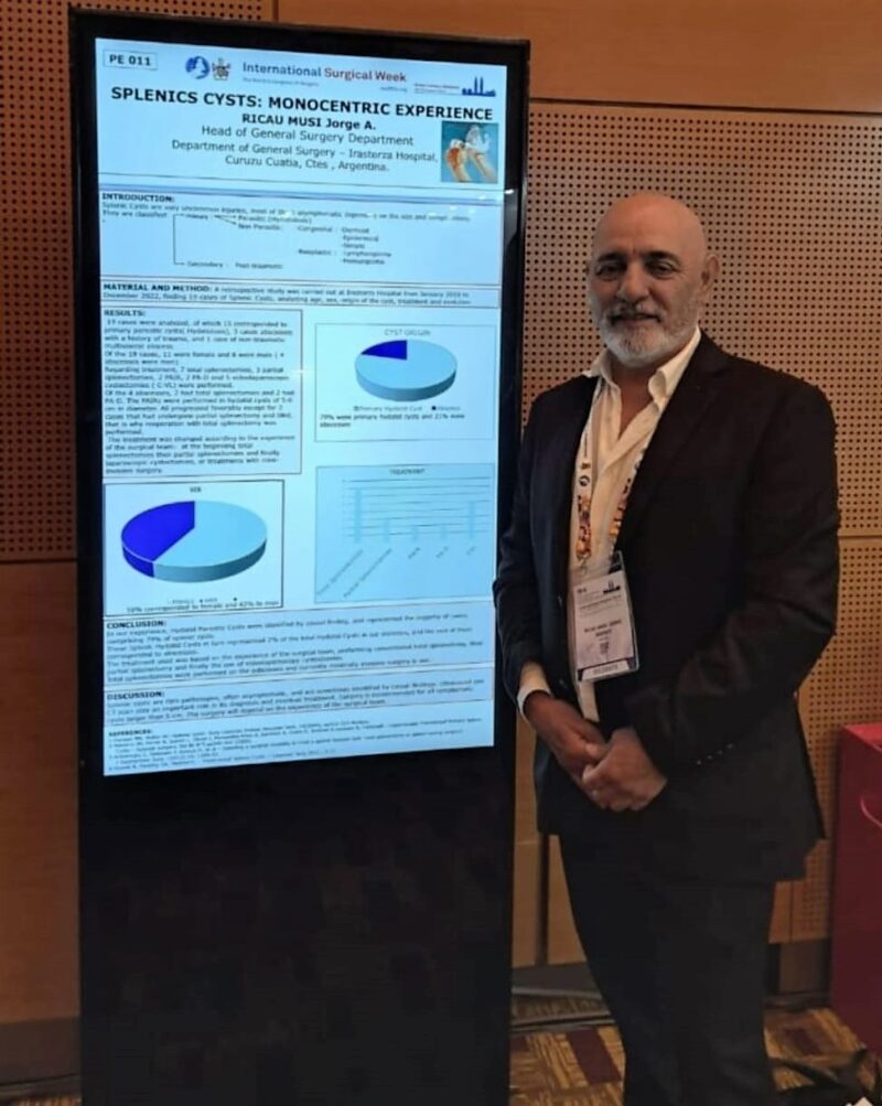 Ricau Musi, con más de dos décadas de trayectoria como médico, fue seleccionado para presentar sus investigaciones en formato de láminas y para exponer sobre uno de los temas en los que trabajó de manera exhaustiva: la hidatidosis. Esta enfermedad, producida por el parásito Echinococcus granulosus y transmitida por perros a través de sus heces, fue objeto de un estudio estadístico que el profesional llevó a cabo durante años en el hospital de Curuzú Cuatiá.