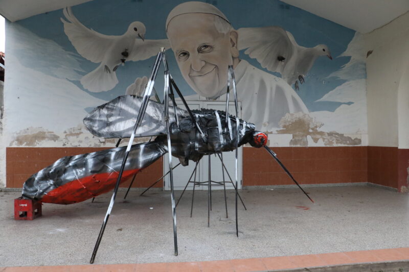 “Fue elaborado por integrantes de la Escuela de Arte Municipal. Este año simboliza al dengue y será un mosquito un mosquito gigante, que la verdad es que está muy bien trabajado”, explicó.
