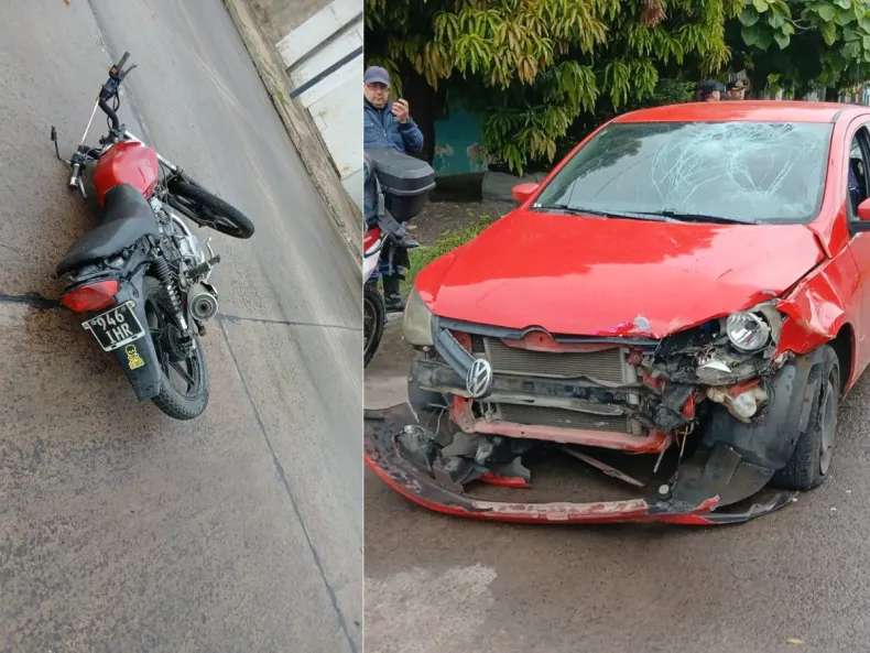 Este jueves, se produjo un fuerte choque entre un automóvil y una motocicleta en el cruce de la avenida Independencia y la calle Juan José Paso, en la ciudad de Corrientes.