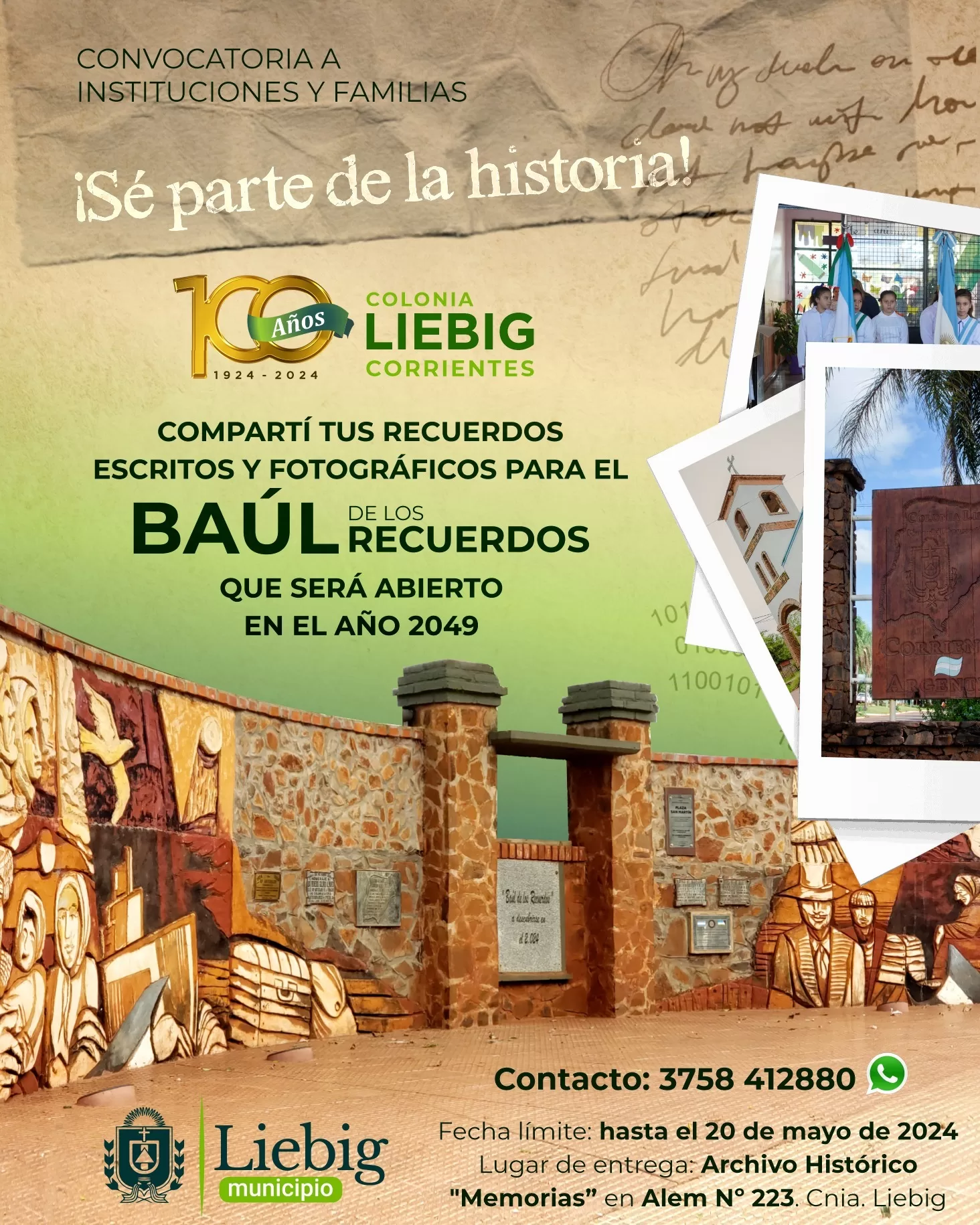 Los interesados pueden comunicarse al 3758-412880 o dejar su colaboración en el Archivo Histórico «Memorias de Colonia Liebig».