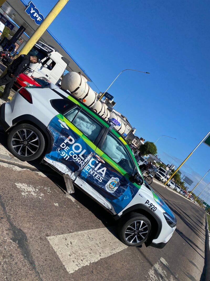 El siniestro vial ocurrió pasado el mediodía en la intersección de las avenidas Artigas y Ferré. Debido al fuerte impacto el acompañante del conductor de la patrulla fue trasladada a la sala de Emergencias del hospital Escuela.