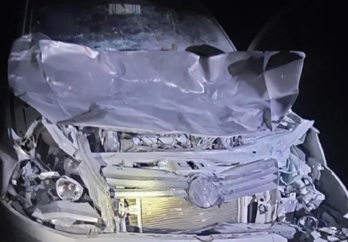 El vehículo marca Volkswagen Voyage circulaba por ruta Nacional Nº 118, kilómetro 13,5 a la altura de Saladas, cuando se atravesó una vaca. La parte delantera fue abollada por el impacto, y afortunadamente, según lo informado solo se lamenta esta pérdida material.