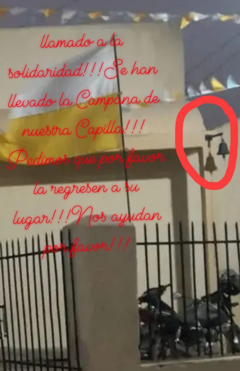 A través de sus redes sociales, el templo llamó a la solidaridad de los vecinos para dar con el valioso instrumento: “Llamado a la solidaridad de nuestra comunidad!!!! Se han llevado la Campana que se encontraba colocada en el frente desde hace muchos años, les pedimos a los que se la llevaron que por favor la devuelvan!!!!.Ésto ya está en manos de la policía…Por favor devuelvanla a su lugar”, solicitaron.