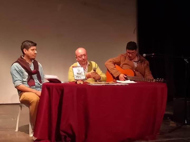 En la foto que ilustra esta nota, texto que se dio a conocer desde el Municipio, quien ejecuta la guitarra es Matías Geneyro, el secretario municipal de Cultura, Educación y Ambiente, que además es músico y poeta; al lado, en el medio, Fabián Brizuela, director de la Biblioteca Popular y en la otra punta el artista plástico Julio Monzón Geneiyro, que ilustró la tapa del libro de Fabián Brizuela, libro que lleva el prólogo de Rodrigo Galarza, radicado en Madrid, España. La obra literaria tiene apreciaciones de Facundo Alarcón y Osvaldo Mazán.