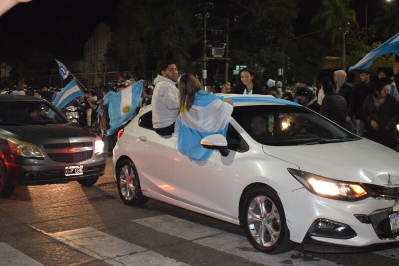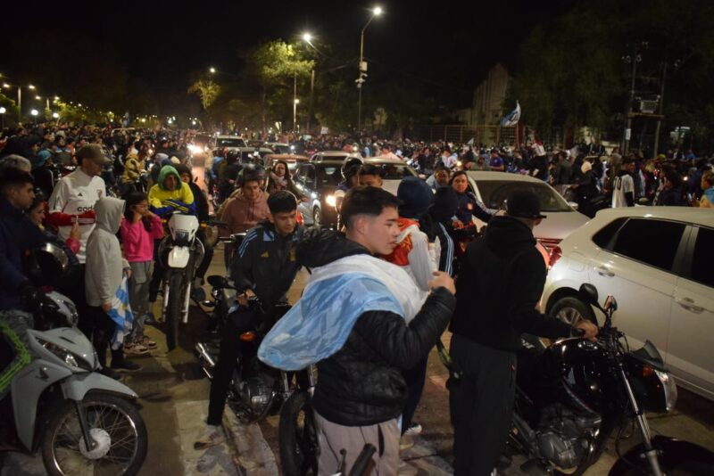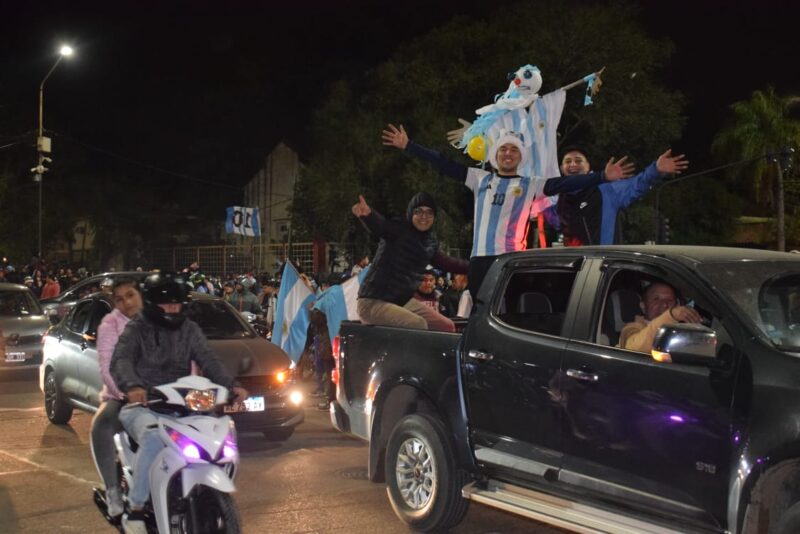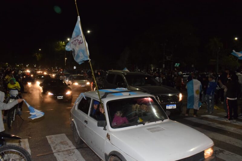 Una caravana de cientos de vehículos tiñó de celeste y blanco las calles de la ciudad. Luego los festejos se concentraron una vez más de manera espontánea en Costanera y avenida 3 de Abril, para celebrar que el equipo dirigido por Lionel Scaloni, consiguió una nueva Copa América.