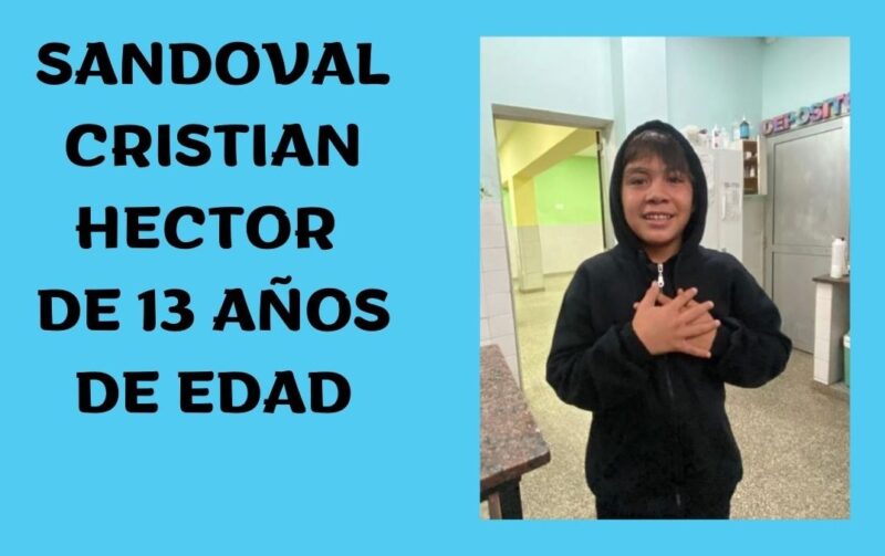 Cristian Héctor Sandoval: de solo 13 años, 1,60 m de estatura, contextura delgada, tez morena, ojos marrones y cabello corto oscuro. Como seña particular, posee una cicatriz en la ceja izquierda. Llevaba zapatillas oscuras, jeans negro, un buzo verde agua y un gorro naranja.