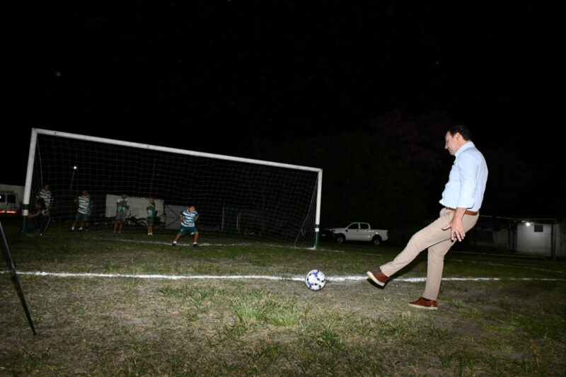 Informó que “llevamos concretados dichos trabajos en 20 canchas como estas”. Detalló así que “cuando uno se pone a pensar en números, son cerca de 1600 millones de pesos, solamente en iluminación”.