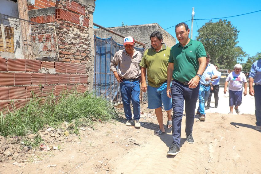 El gobernador Gustavo Valdés, en el barrio La Chola de Capital este lunes, recorrió obras tanto finalizadas como en ejecución, y planificará las próximas según las necesidades de los vecinos.