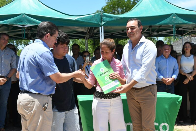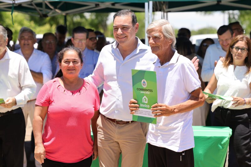 El gobernador Gustavo Valdés encabezó este viernes una doble jornada de gestión en Paso de la Patria, entregando diez nuevas viviendas del Programa Oñondivé a familias de la localidad e inaugurando, además, la Comisaría Segunda.