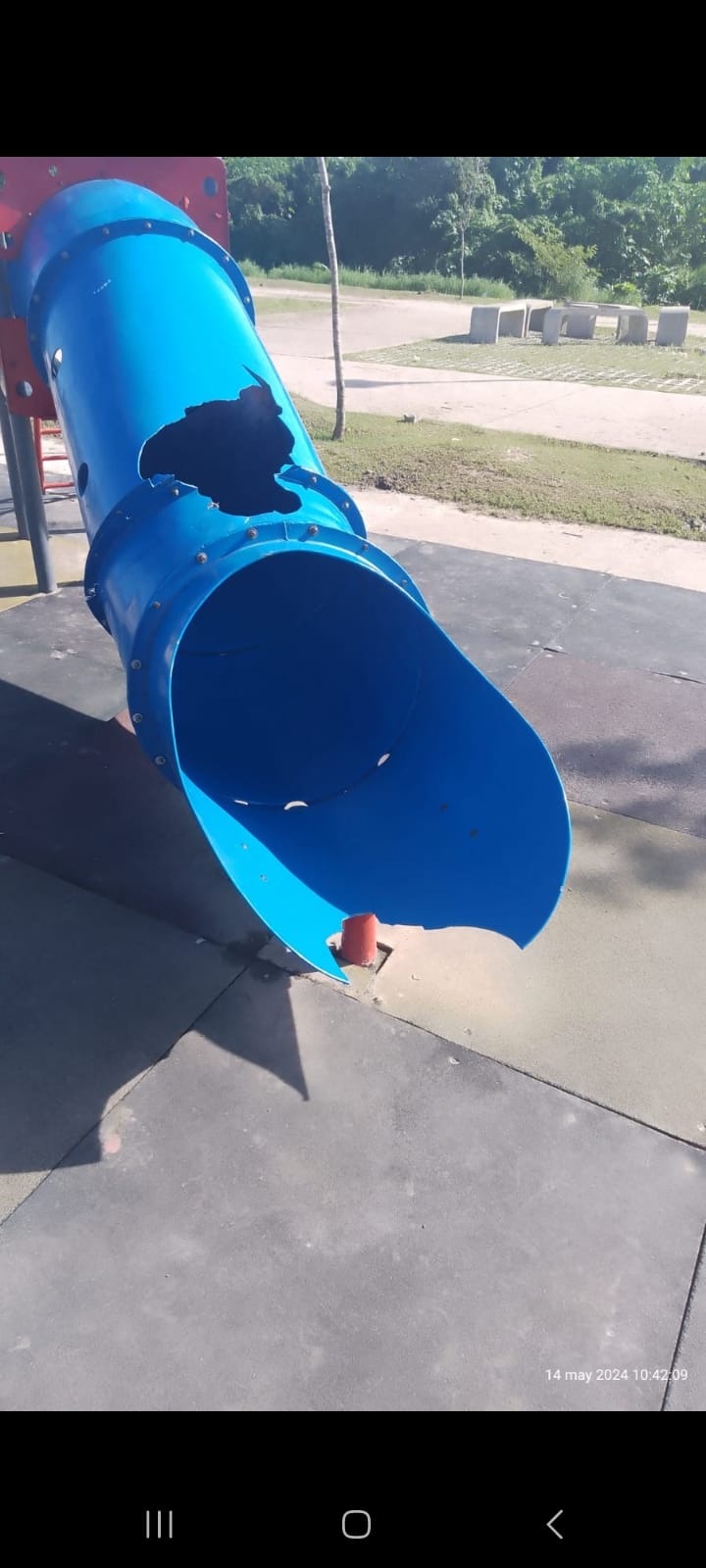 Cabe destacar que días atrás, por el mismo medio, informaron de la detrucción de hamacas en el espacio de juegos destinado a los niños.