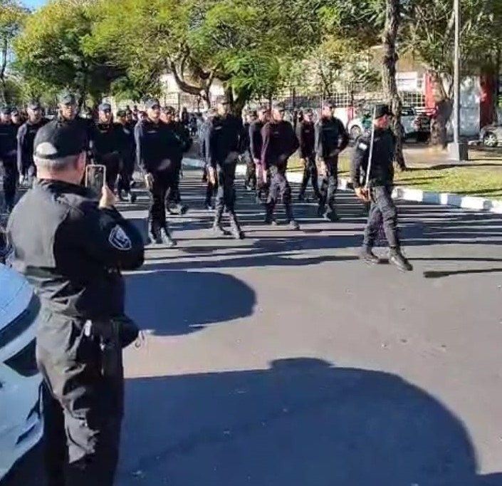 Vecinos y turistas disfrutaron del ensayo para el desfile de la Policía de Corrientes que se celebrará el 9 de agosto.