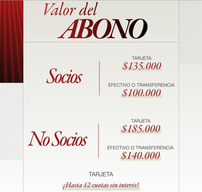 En el parte de prensa los precios de los mismos en las dos categorías, socios y no socios son los siguientes: