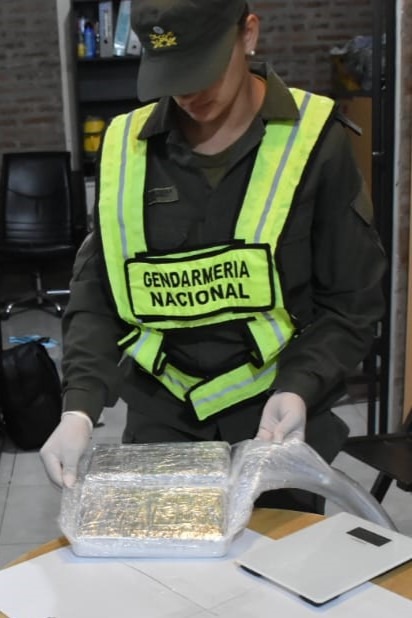 Ante esa situación, se procedió a la inspección del rodado y los uniformados notaron que una mujer llevaba dos paquetes rectangulares, ambos pegados con una cinta en su cintura.