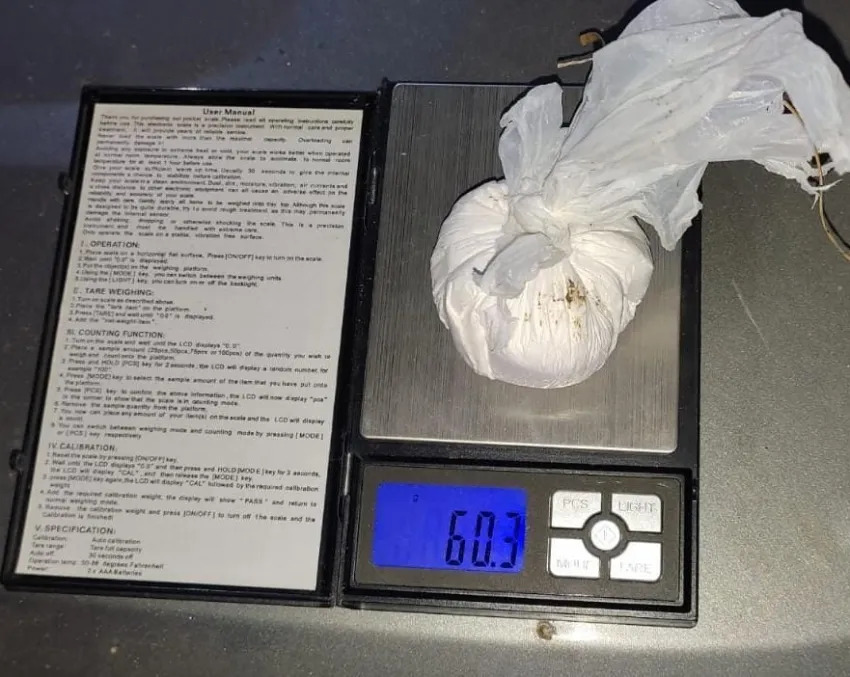 En una primera inspección se detectó que llevaban una balanza de precisión y una “bochita” de cocaína, pero en el control exhaustivo del automóvil no se halló nada. Por otro lado, en un recorrido posterior por el trayecto realizado por el remis se pudo encontrar en la banquina de la ruta una bolsa con unos 60 gramos de cocaína de máxima pureza.