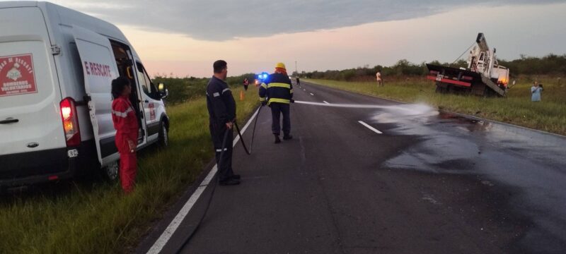 En la madrugada de hoy, se produjo un violento choque de camiones en la Ruta Nacional 12. El siniestro ocurrió a la altura del kilómetro 925, en el departamento de Saladas.