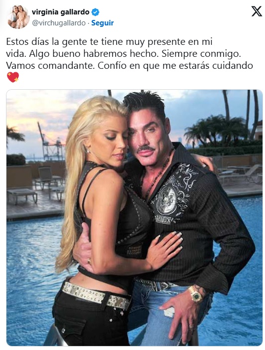La candidata correntina utilizó su cuenta de X (ex Twitter) para compartir una foto de archivo donde se la ve abrazada a Fort. «Estos días la gente te tiene muy presente en mi vida. Algo bueno habremos hecho. Siempre conmigo. Vamos comandante. Confío en que me estarás cuidando», escribió Gallardo.