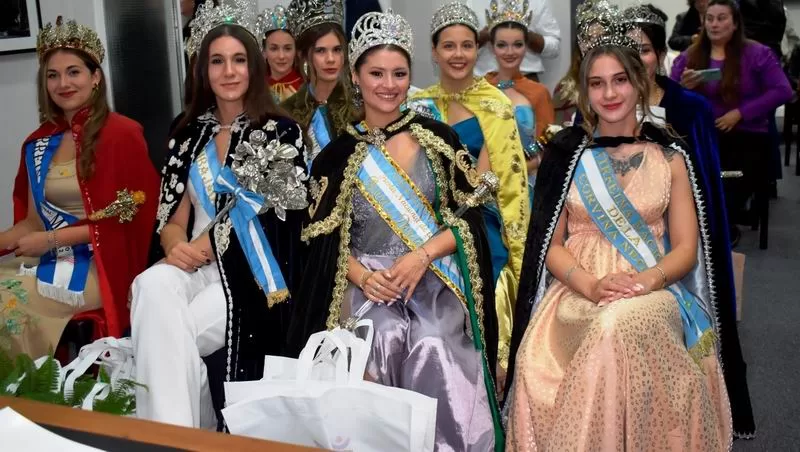 GOYA. En el anochecer del sábado, el Salón de Acuerdos de la Municipalidad se iluminó con la visita de gala de reinas, embajadoras y embajadores de diversas fiestas de la provincia y el país para participar del tradicional agasajo que les brinda el Municipio, encabezado por el intendente, Mariano Hormaechea, quien acompañó la ceremonia de intercambios de obsequios con los visitantes, junto a la Reina Nacional del Surubí saliente, Luz Stride; el secretario municipal de Turismo, Sebastián Candia y el presidente de la Comisión Municipal de Pesca (Comupe), Pedro Sá.