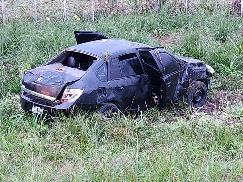 Un automóvil con tres ocupantes despistó volcó en la Ruta 129, de acceso a la ciudad de Monte Caseros en la madrugada de este domingo 23. Todos salieron ilesos y culparon del hecho a un motociclista que circulaba sin luz.