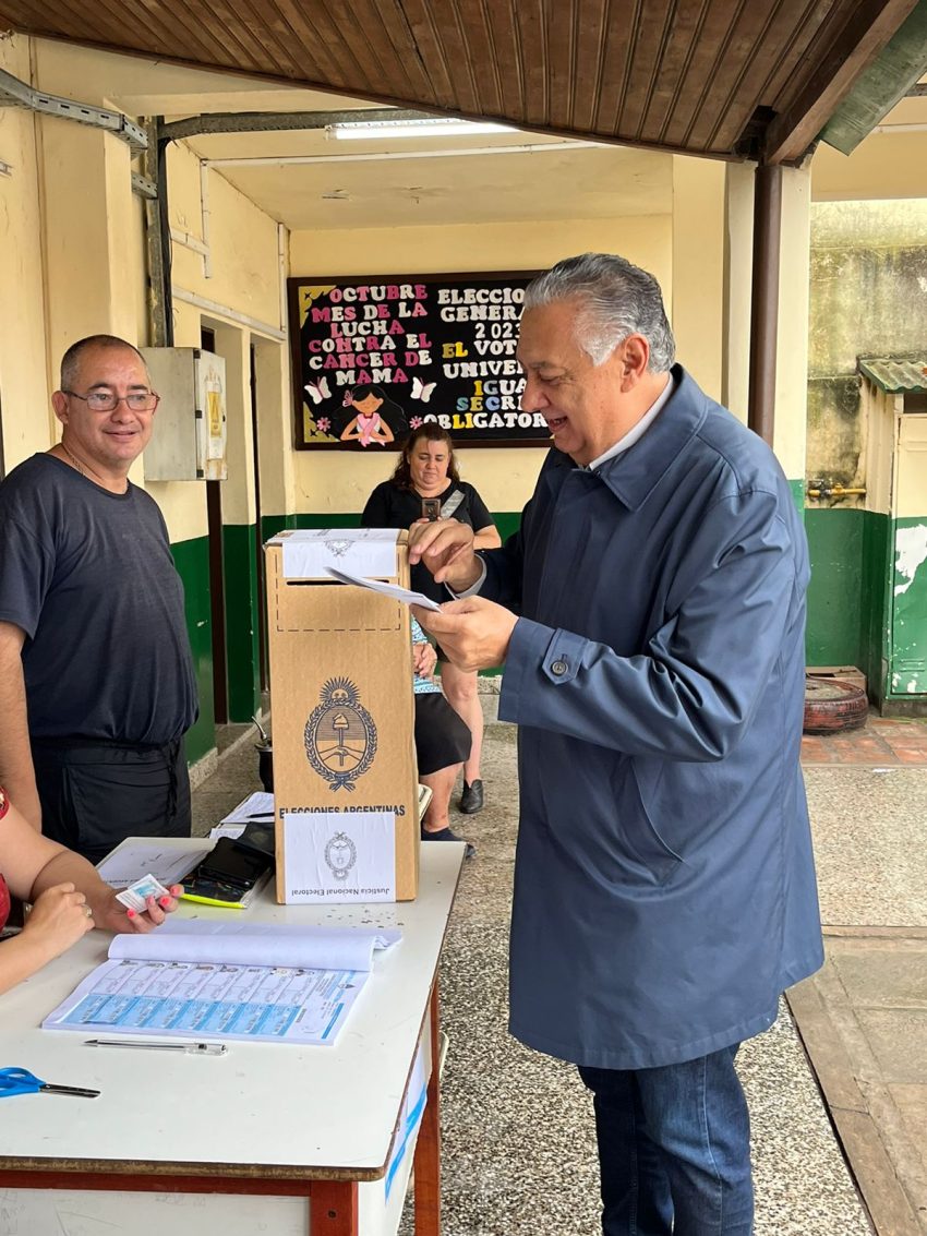 Instando a la participación con esperanza, votó en la Escuela 66 de Goya, el presidente de la Cámara de Diputados Pedro “Perucho” Cassani, como siempre cerca de las 9 horas.