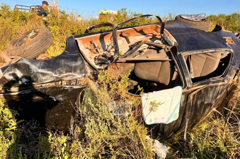 Eran cerca de las 18 cuando, por causas que los peritos aún intentan establecer, un Volkswagen Gol perdió el control. El vehículo, en el que viajaba una familia joven, se despistó y dio varios tumbos hasta quedar volcado a un costado de la banquina.
