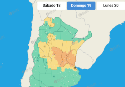 Según informó el SMN: “El área será afectada por tormentas aisladas, algunas fuertes. Las mismas estarán acompañadas por abundante caída de agua en cortos períodos, ráfagas superiores a 60 km/h, ocasional caída de granizo y actividad eléctrica intensa”.