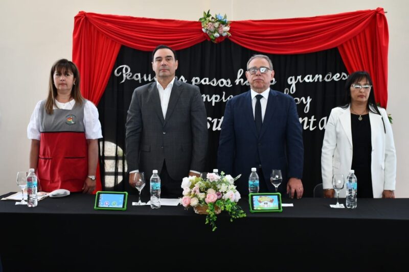 A la par las autoridades hicieron propicia la ocasión para entregar la totalidad del mobiliario escolar especifico del nivel inicial, una heladera de dos puertas, una cocina con horno, termotanque, mobiliario de oficinas, banderas de ceremonia, una partida de útiles escolares, juegos didácticos, una computadora con impresora para tareas administrativas. Confirmaron además la continuidad del programa Mitaí Digital, que contempla la entrega de Tabis, que son tablets adaptadas con aplicaciones para aprender jugando.