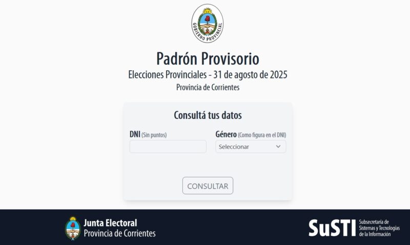 La Junta Electoral de la Provincia de Corrientes habilitó las consultas online al Padrón Provisorio para las Elecciones Provinciales del 31 de agosto de 2025. Los residentes correntinos habilitados para sufragar son 950.320, de acuerdo a la información proporcionada.